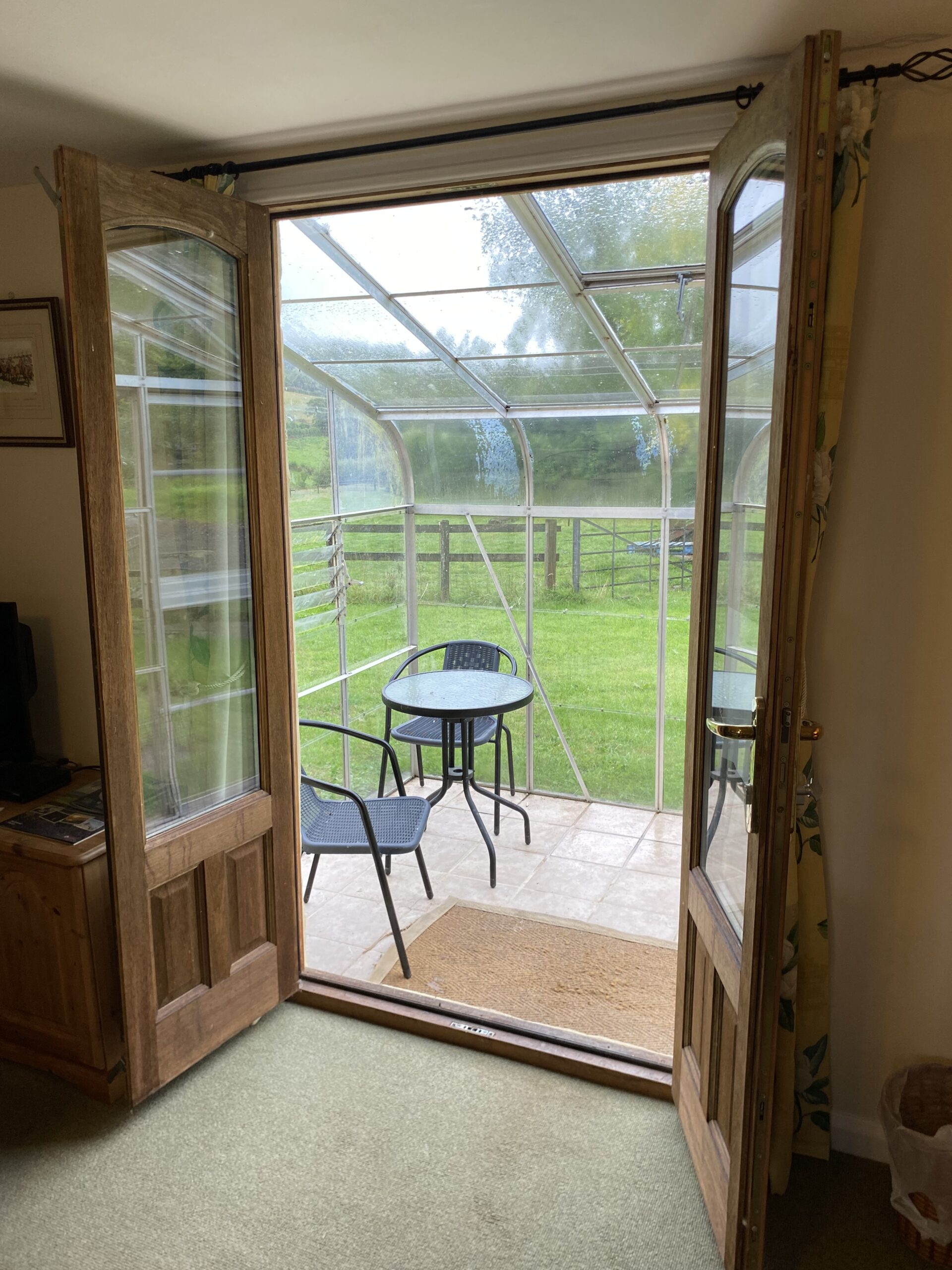 Bramble cottage sleeps 2 people and is on one level which comprises of a double bedroom, a kitchen, dining and living area as well as a bathroom with a shower. The cottage also has a conservatory attached to the private garden looking over the fields and down to the river, a good place to keep outdoor clothing and boots out of the cottage, and to wipe the dog down!